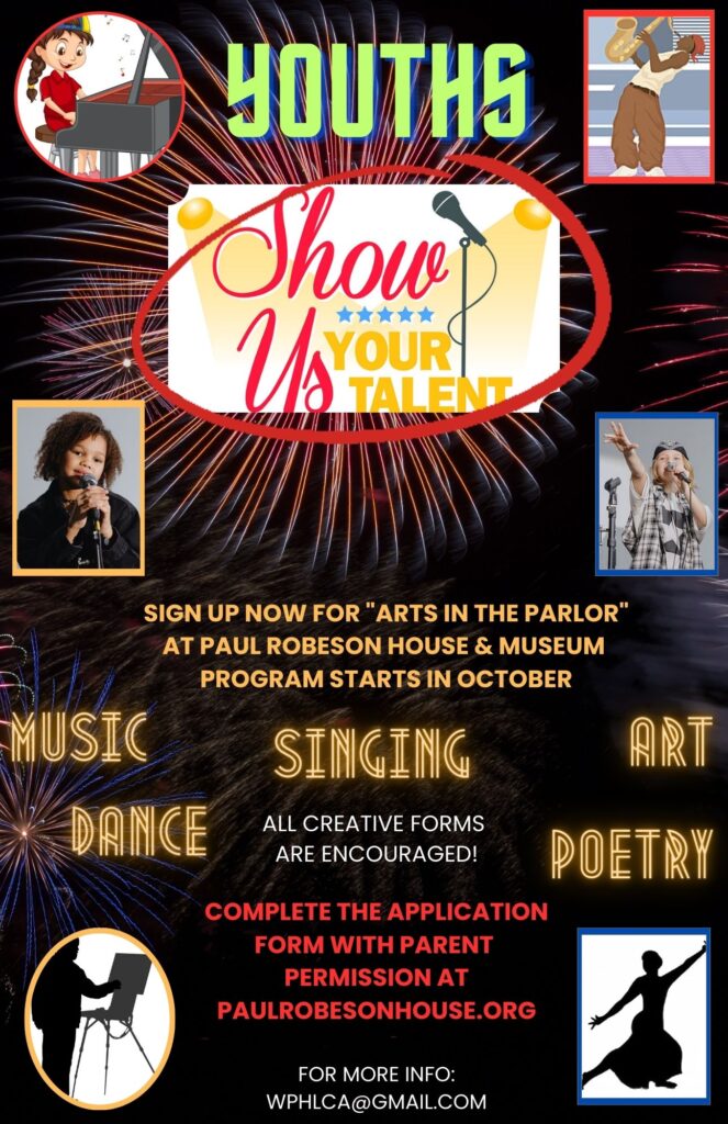 The Paul Robeson House & Museum is planning an exciting “Arts in the Parlor” program this fall, and we’d like to showcase your talented child.